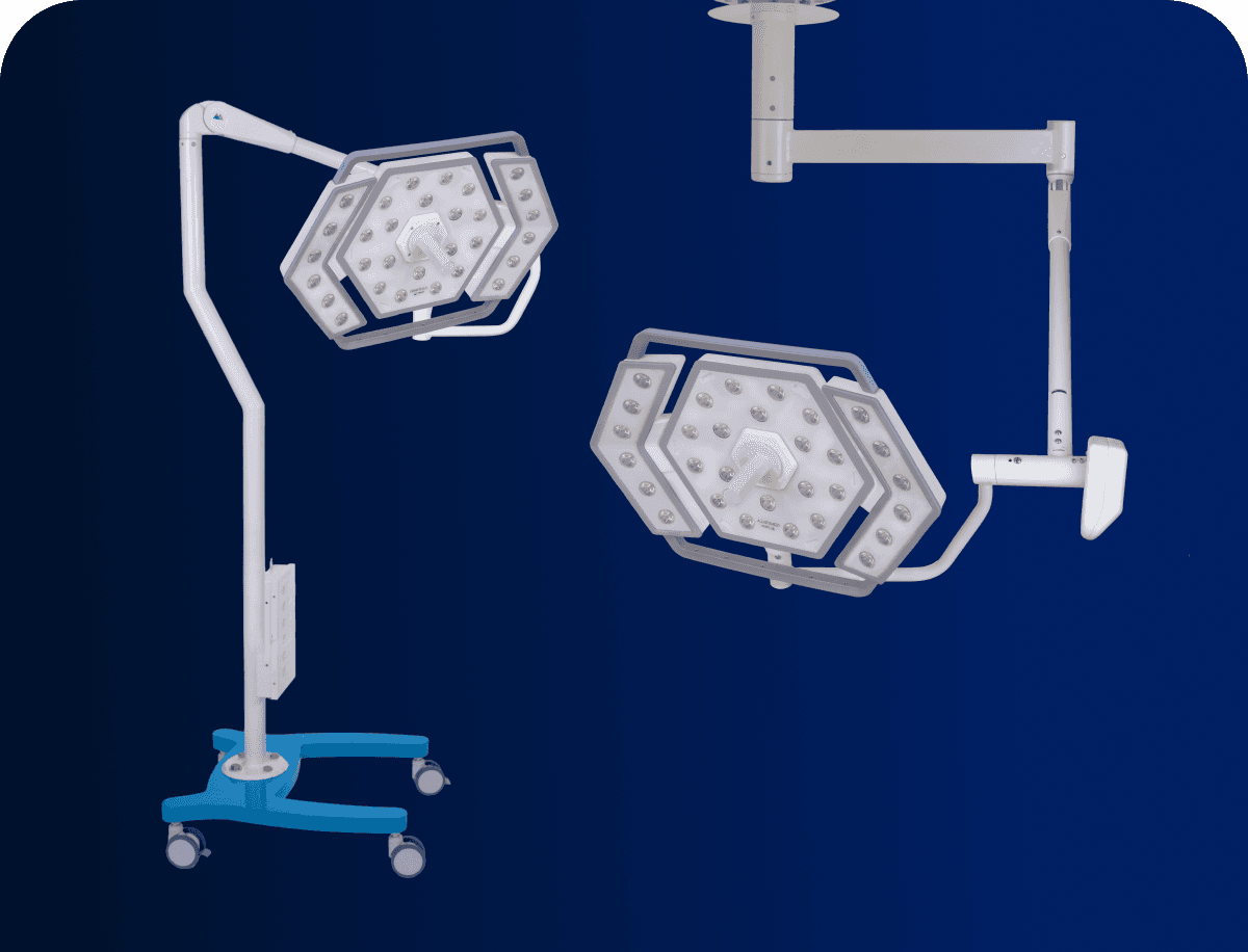Energy efficient LED Technology, paired with ambient blue light diodes on the border ensure that the surgeons under the dome do not feel the heat and strain that comes with a conventional OT Light, even when at full power (1,60,000lux)