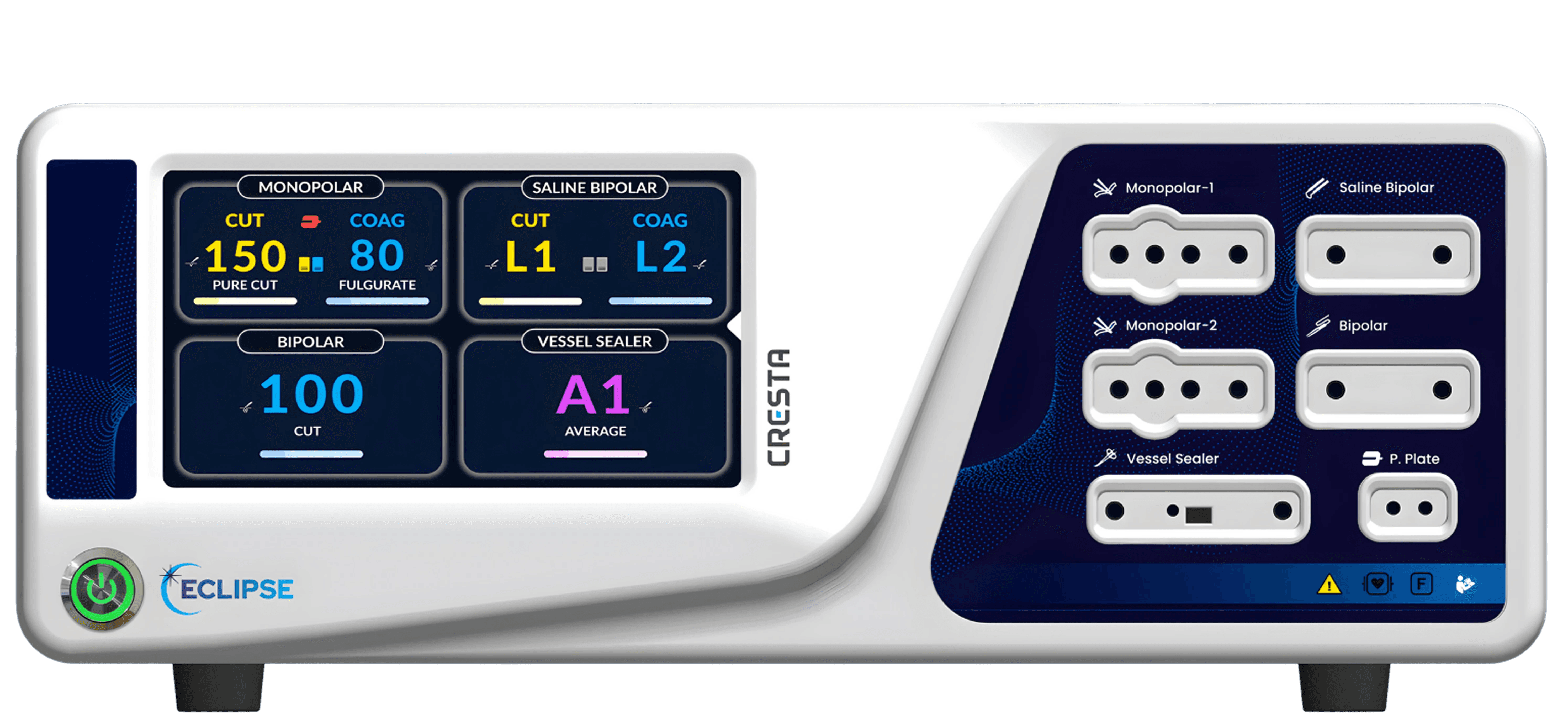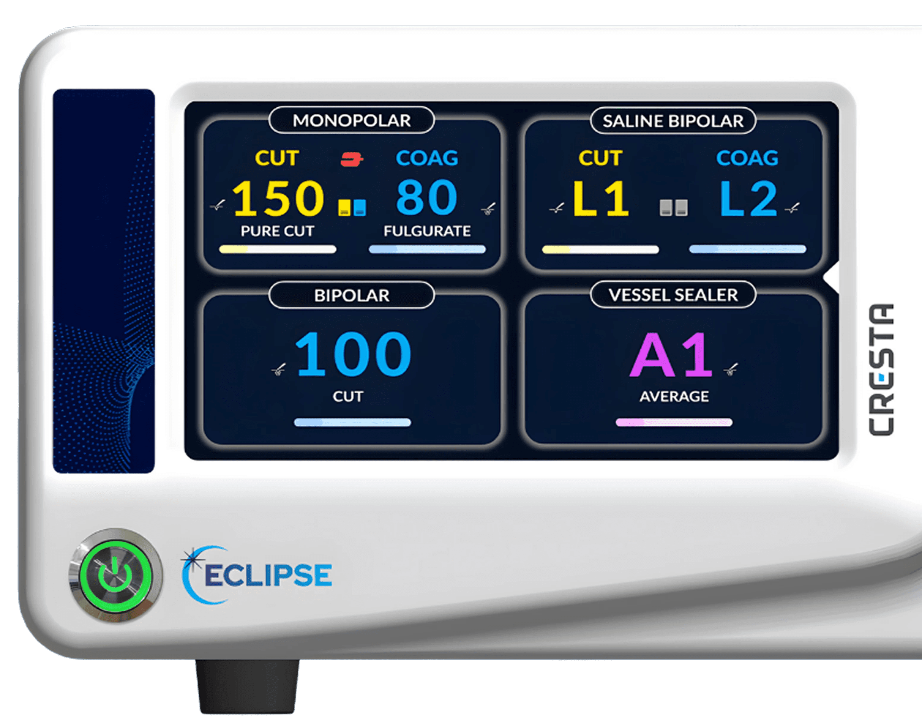 The Cresta Touch Screen is a state-of-the-art surgical energy platform engineered for precision, safety, and user-friendly operation. Its advanced capacitive touch interface empowers surgeons to effortlessly select modes, adjust power levels, and monitor performance in real-time during critical procedures.